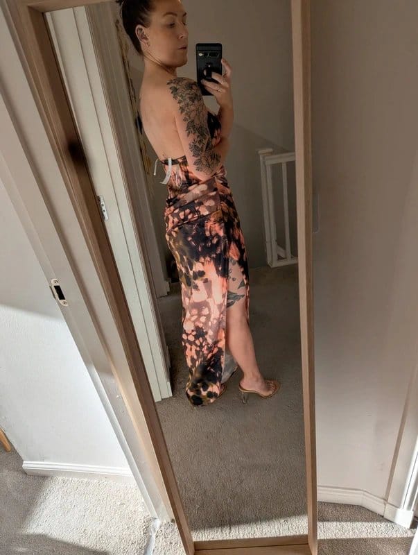 The ASOS DESIGN Abstract Marble Bandeau Dress is available in sizes S.
