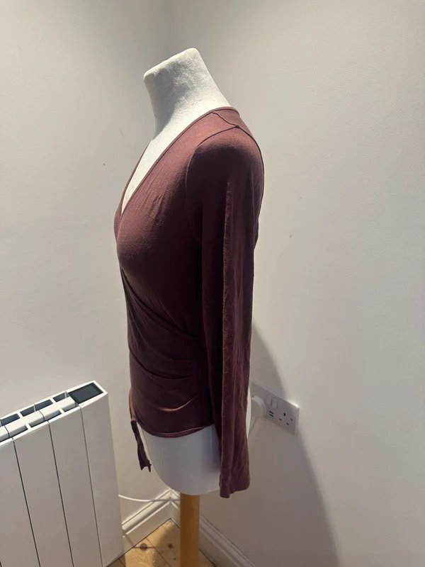 The ASOS burgundy body is a versatile piece, crafted with a long sleeve design. It features a wrap-around style, adding an elegant touch to any outfit.