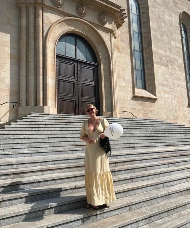 The butter yellow maxi dress is a perfect choice for summer. Its flattering silhouette is adorned with embroidered flowers on the sleeves, making it ideal for warm-weather occasions.