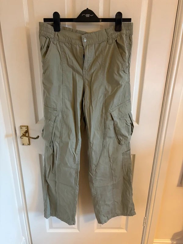 The ASOS Khaki Cargo Pants with Pockets is available in sizes L.