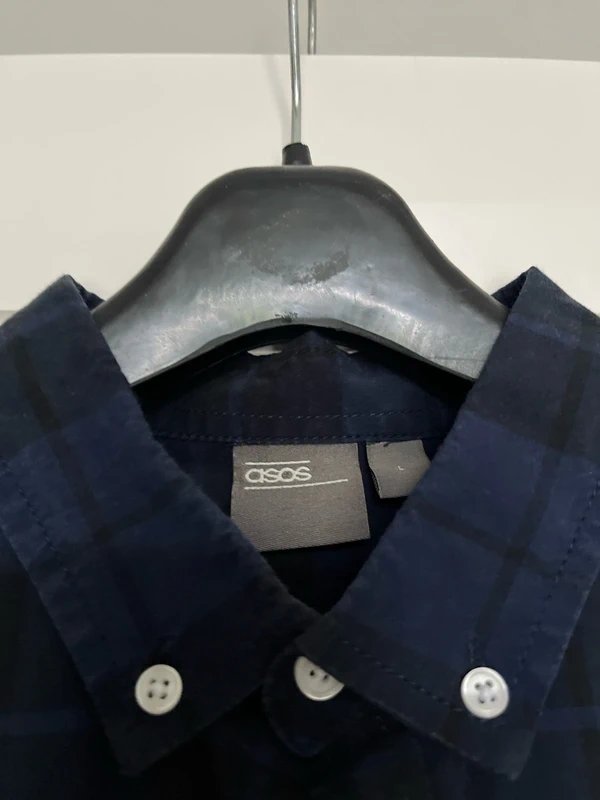 The ASOS Navy Check Shirt Long Sleeve is available in sizes L.