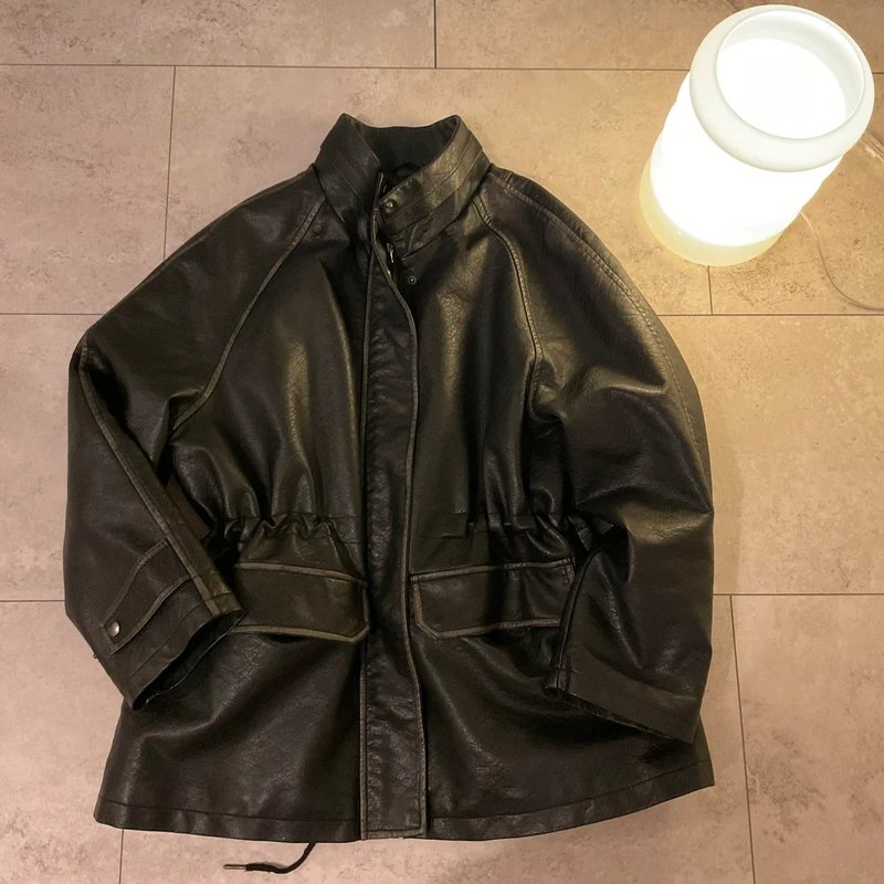 The ASOS Cinch Waist Leather Jacket in Black is ideal for casual, smart-casual.