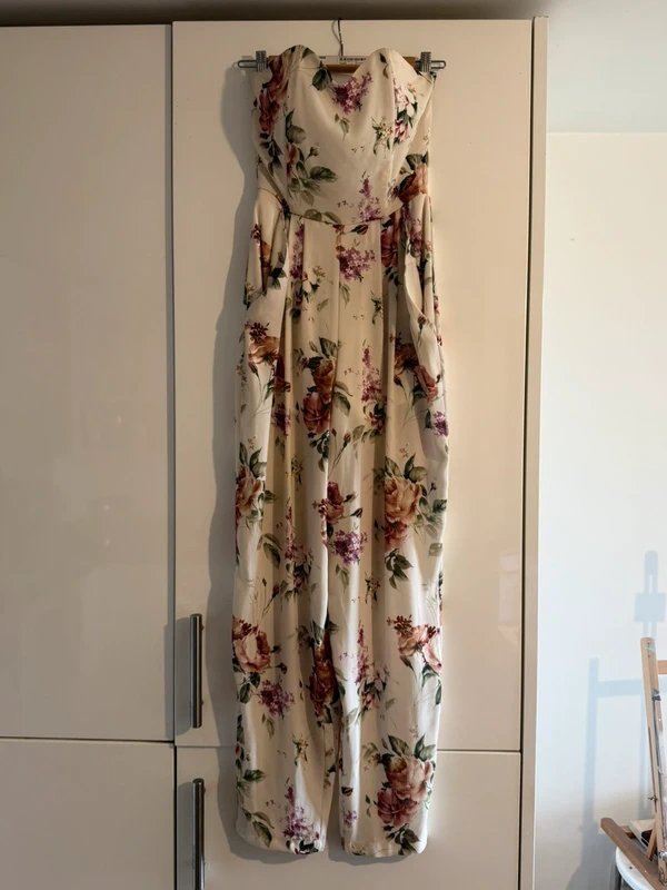 This elegant floral jumpsuit is a statement piece perfect for all occasions. Ideal for weddings, garden parties, or evening events, this jumpsuit pairs beautifully with nude heels and minimal jewellery.