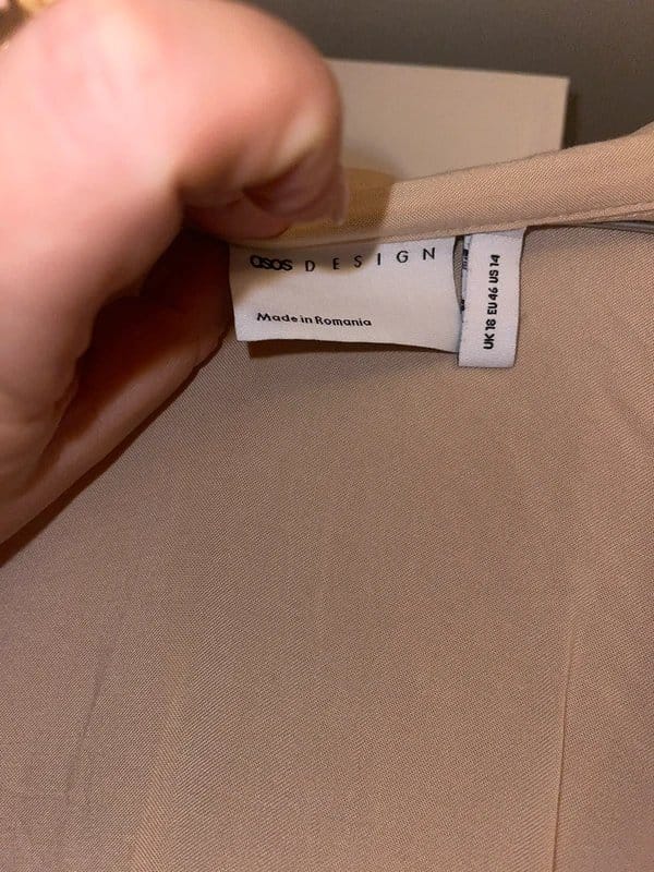 The ASOS Cream Cut Out Tie Midi Dress is made from polyester, cotton.