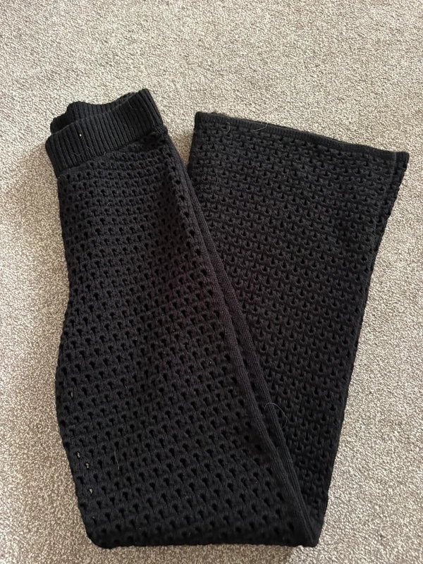 The ASOS Crochet Bell Trousers in Black is available in sizes S.