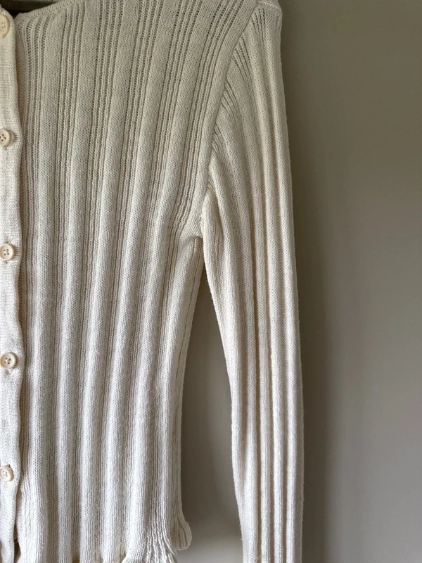 The cream crochet rib knit cardigan offers a touch of softness and elegance. Its button closure and ribbed texture add to the cozy appeal, perfect for layering over your favorite tops.