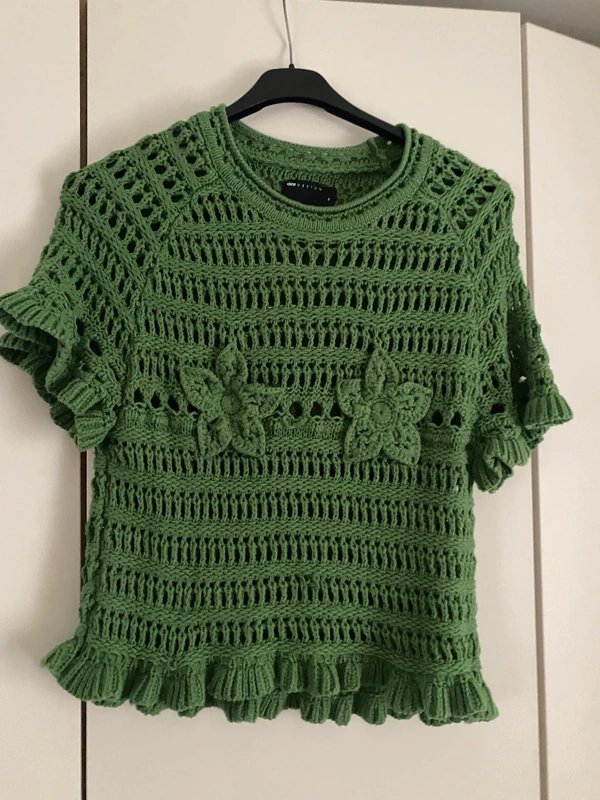 The ASOS Crochet Top in Dark Green is available in sizes M.