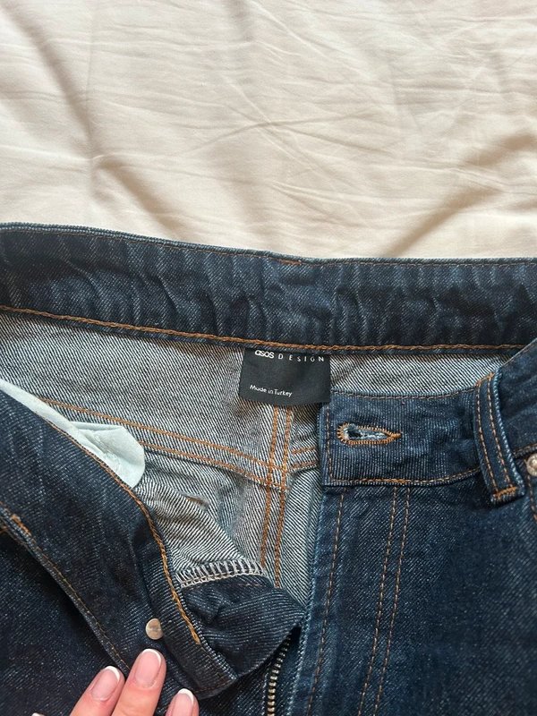 These dark wash navy jeans by ASOS feature a classic straight-leg silhouette, perfect for both casual and smart-casual occasions.