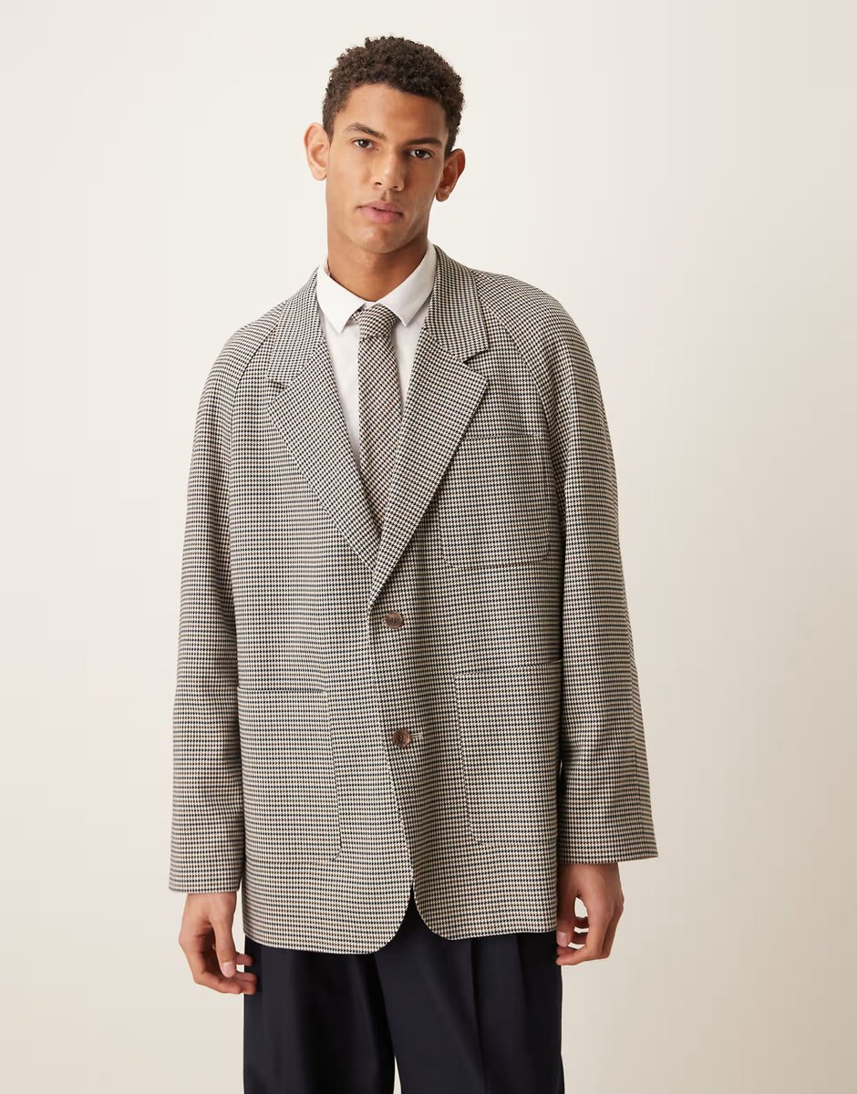 Crafted with a slouchy fit, this raglan blazer in stone puppytooth adds a contemporary touch to your wardrobe. Perfect for layering over shirts or knitwear, it features a versatile design suitable for various occasions.