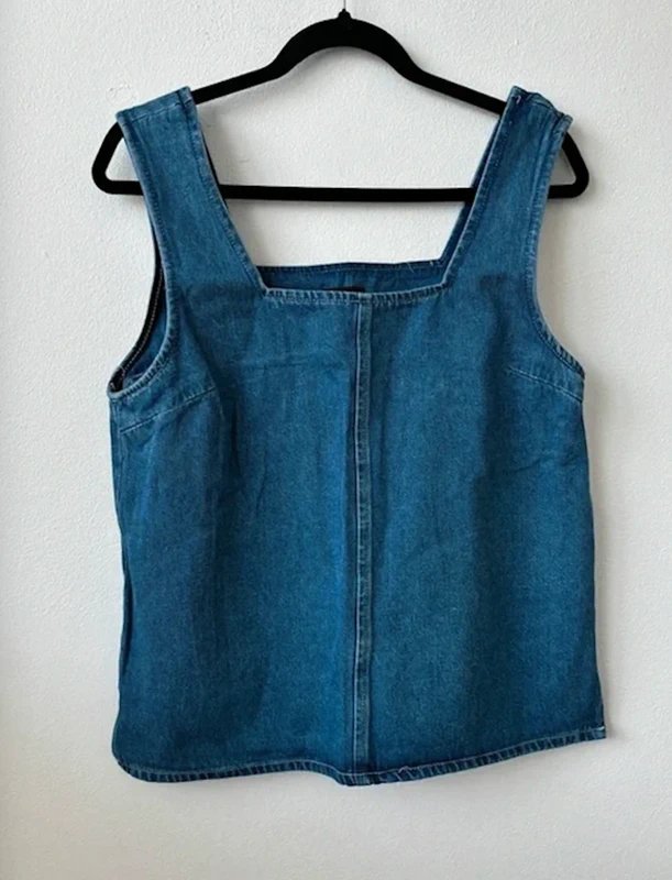 Crafted from 100% cotton, this sleeveless top features a denim fabric with a casual vibe. Ideal for layering or as a standalone piece, this top adds a touch of denim charm to your wardrobe.