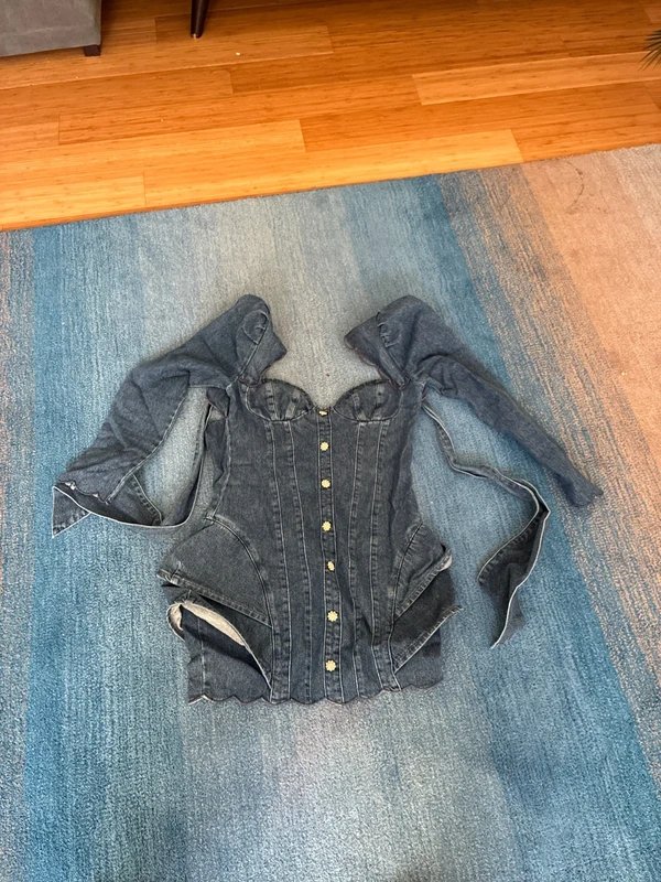 Navy Denim Luxe Dress — the must-have occasion dress for casual outings and denim lovers. Designed in navy, this denim dress features a corset-style bodice with puff sleeves and a zipper closure. Crafted from denim fabric with distressed details, it adds a touch of edginess to your wardrobe. Perfect for casual outings and denim enthusiasts.