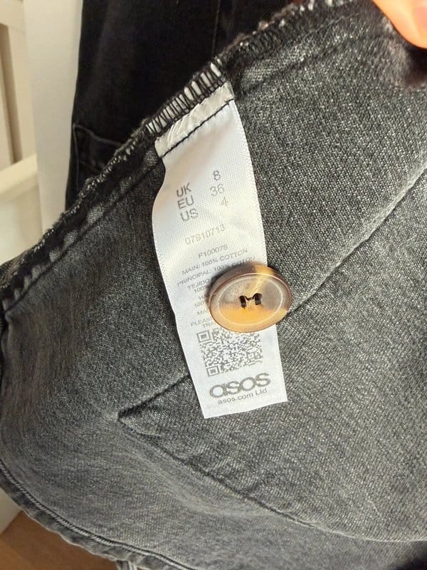 The ASOS Black Washed Denim Pinafore is available in sizes S.
