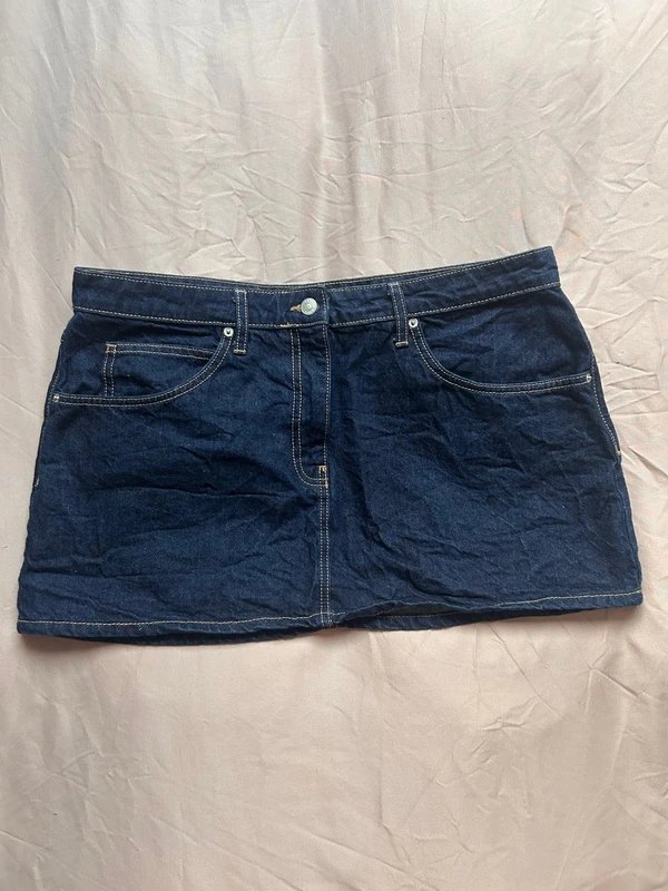 The ASOS Denim Mini Skirt in Navy is available in sizes L.