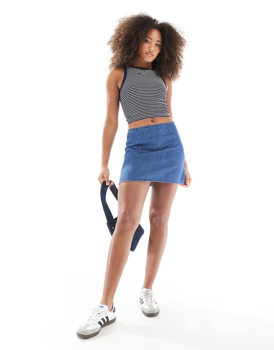 Designed with midwash blue, this A-line mini skirt from ASOS DESIGN is perfect for everyday wear. The versatile denim material and flattering silhouette make it ideal for casual outings.