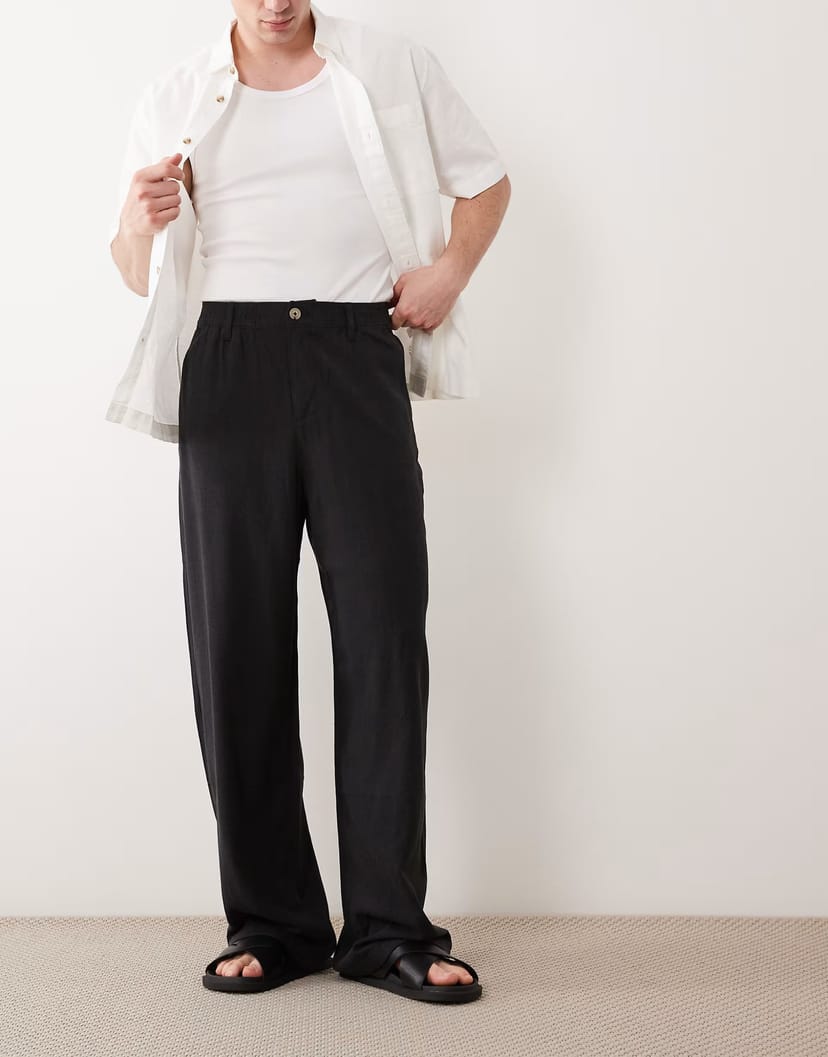The ASOS Black Linen Blend Baggy Trousers is ideal for casual, smart-casual, everyday.