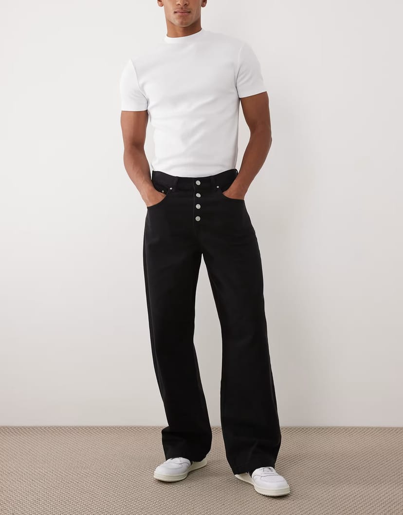 The ASOS Baggy Trouser in Black with Exposed Buttons is ideal for casual.