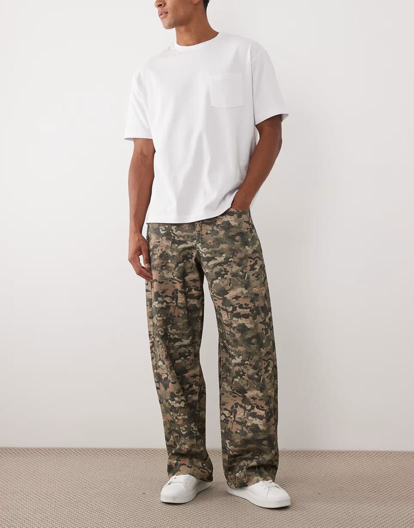 The ASOS Camo Print Baggy Trousers is ideal for casual.