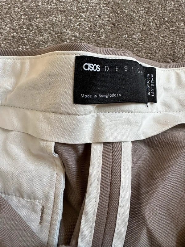 The ASOS Beige Trousers for Men is available in sizes L.