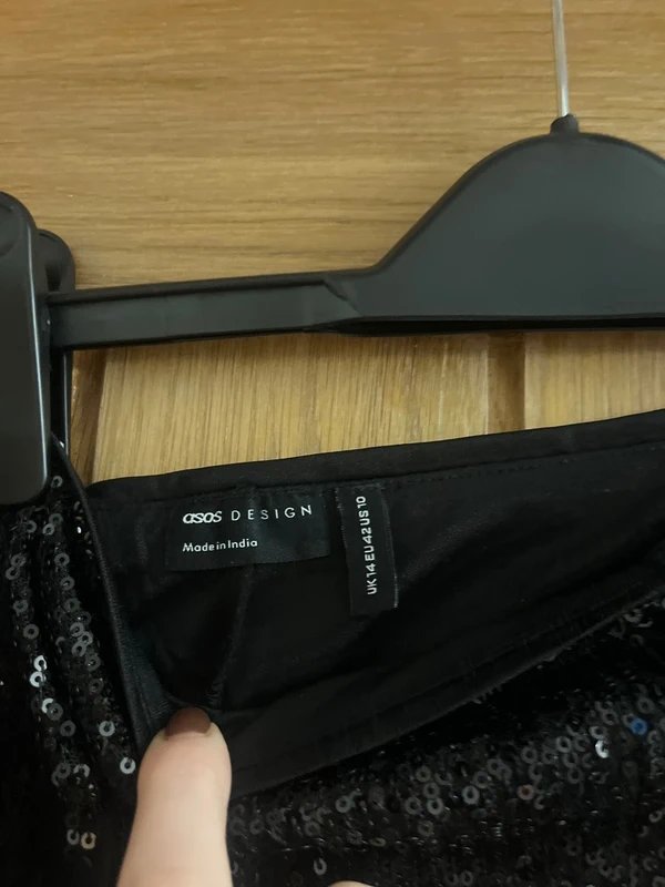 The ASOS Design Sequin Skort in Black is available in sizes M.