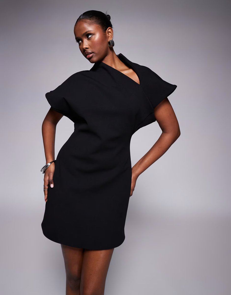 The ASOS Cap Sleeve Mini Dress with Slash Neck in Black is ideal for evening.