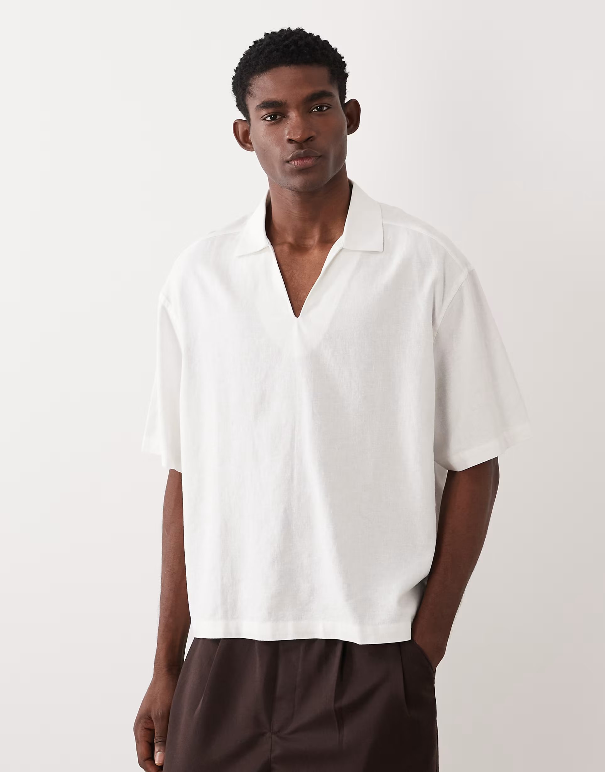 The ASOS Boxy Oversized Linen Blend Shirt in White is ideal for casual, smart-casual.