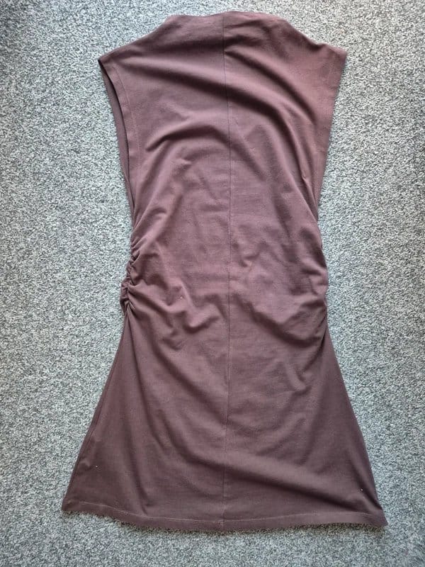 The ASOS Design Brown Ruched Mini Dress is available in sizes M.