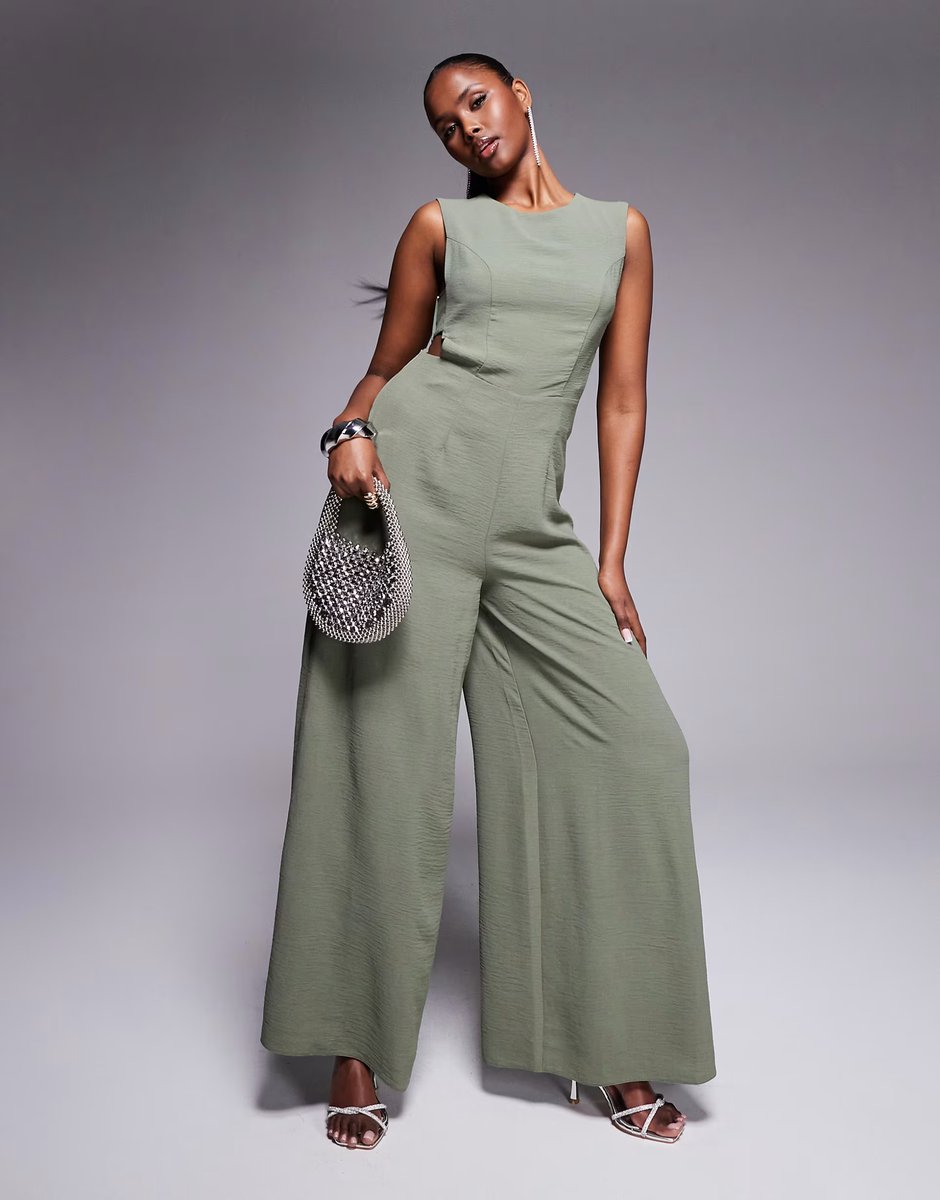 The ASOS DESIGN Buckle Detail Wide Leg Jumpsuit in Khaki is ideal for casual, smart-casual.