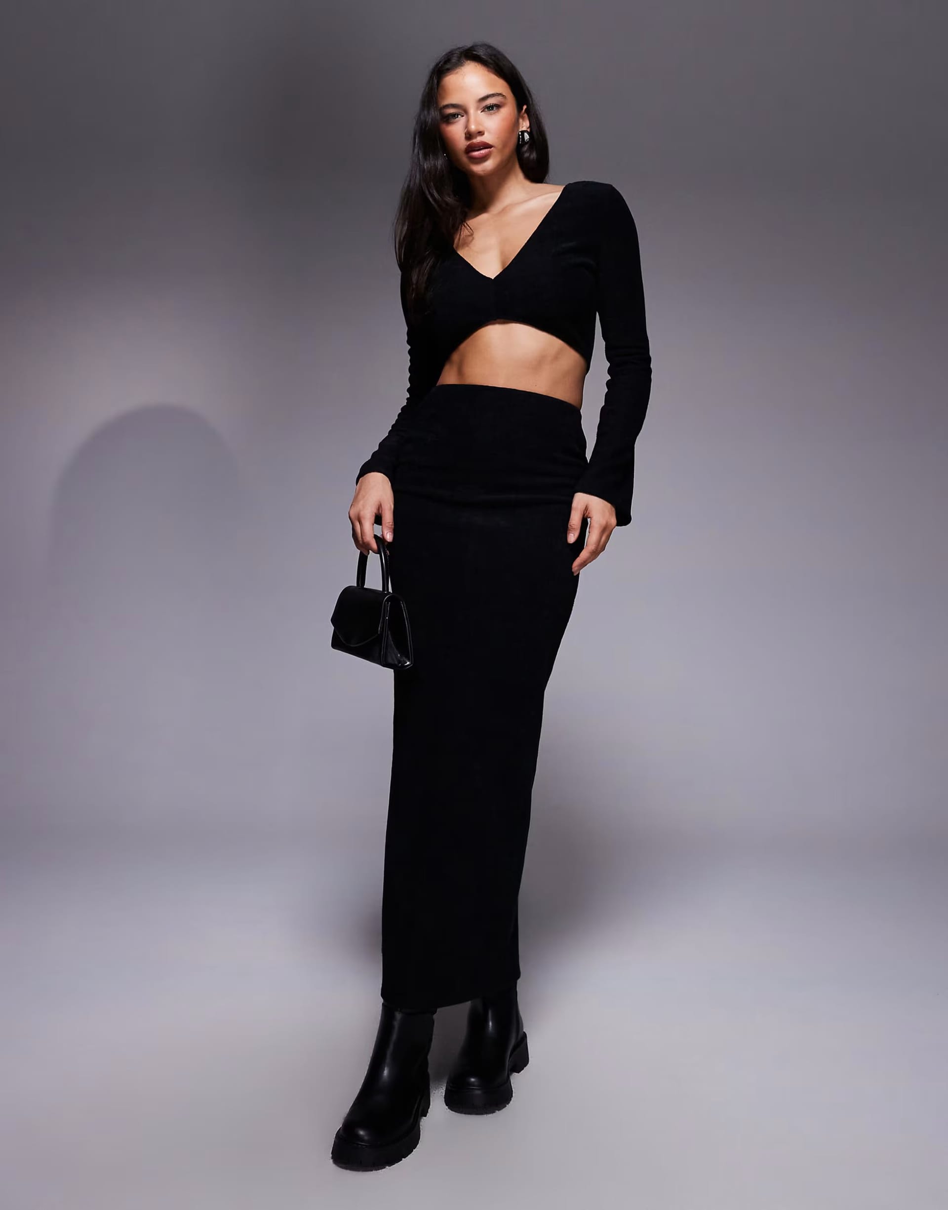 “Pair with black ankle boots and a small black handbag for a cohesive, edgy look.”