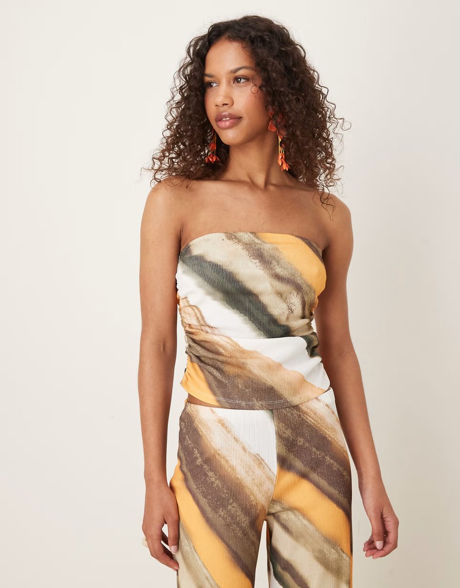 The ASOS DESIGN Bandeau Ruche Co-ord in Abstract Print is ideal for casual, smart-casual.