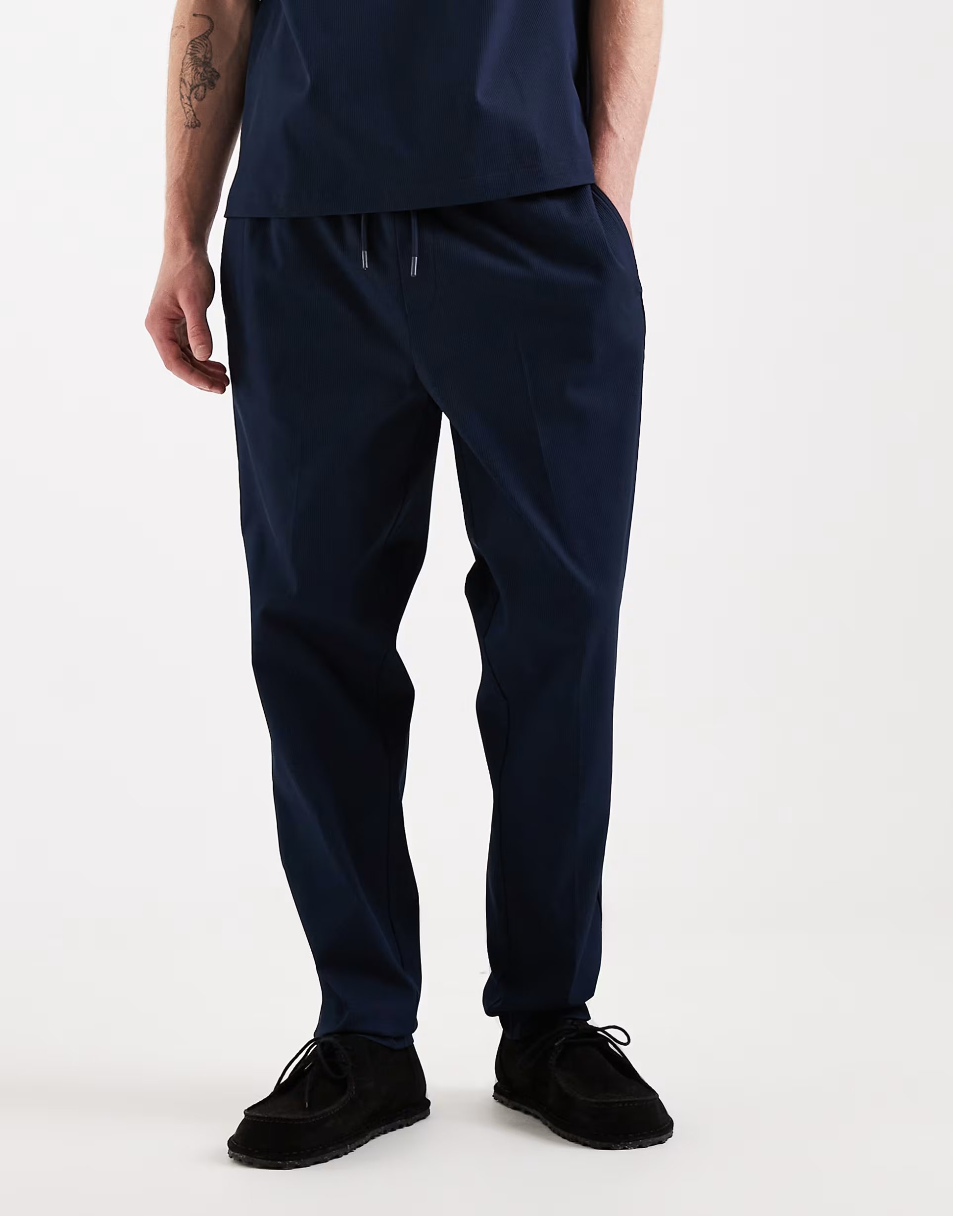 The ASOS DESIGN Slim Tapered Trouser in Navy is ideal for casual, smart-casual.