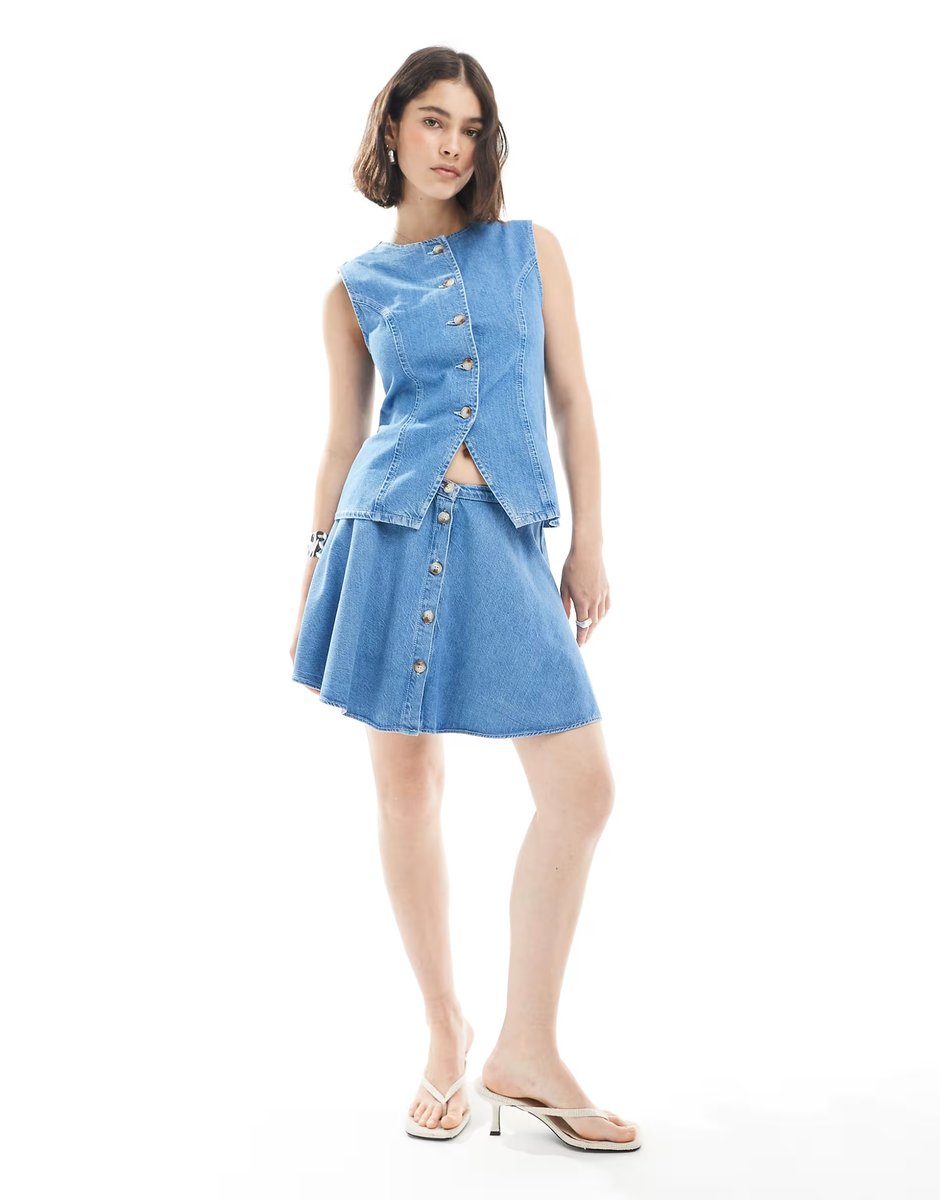 The ASOS DESIGN Light Blue Denim Flippy Skirt Co-ord is ideal for work, business, casual, weekend.