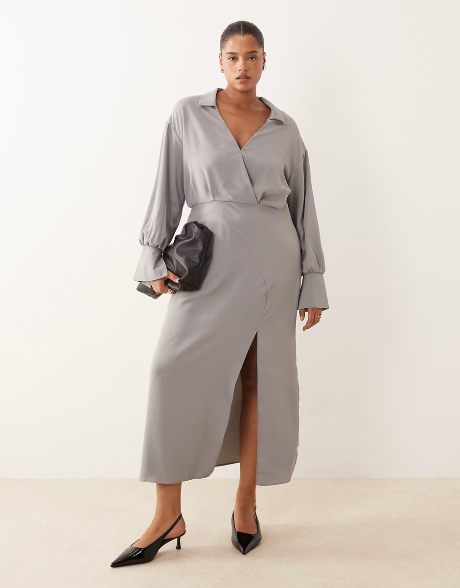 The ASOS Curve Draped Shirt Midi Skirt in Grey is ideal for work, casual, evening.