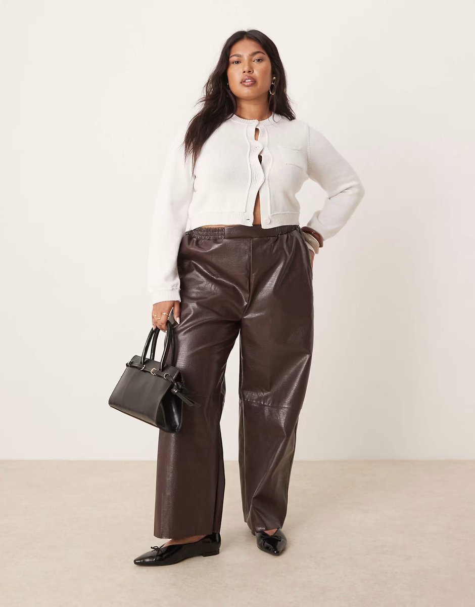 The ASOS Faux Leather Pull-On Barrel Trousers in Chocolate is ideal for casual.