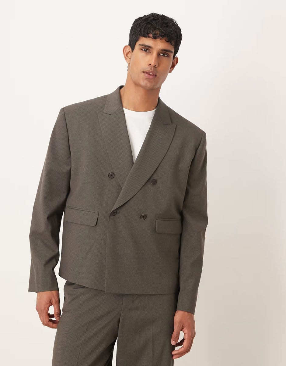 The ASOS DESIGN Light Brown Double Breasted Boxy Suit Jacket is ideal for business, casual, smart-casual.