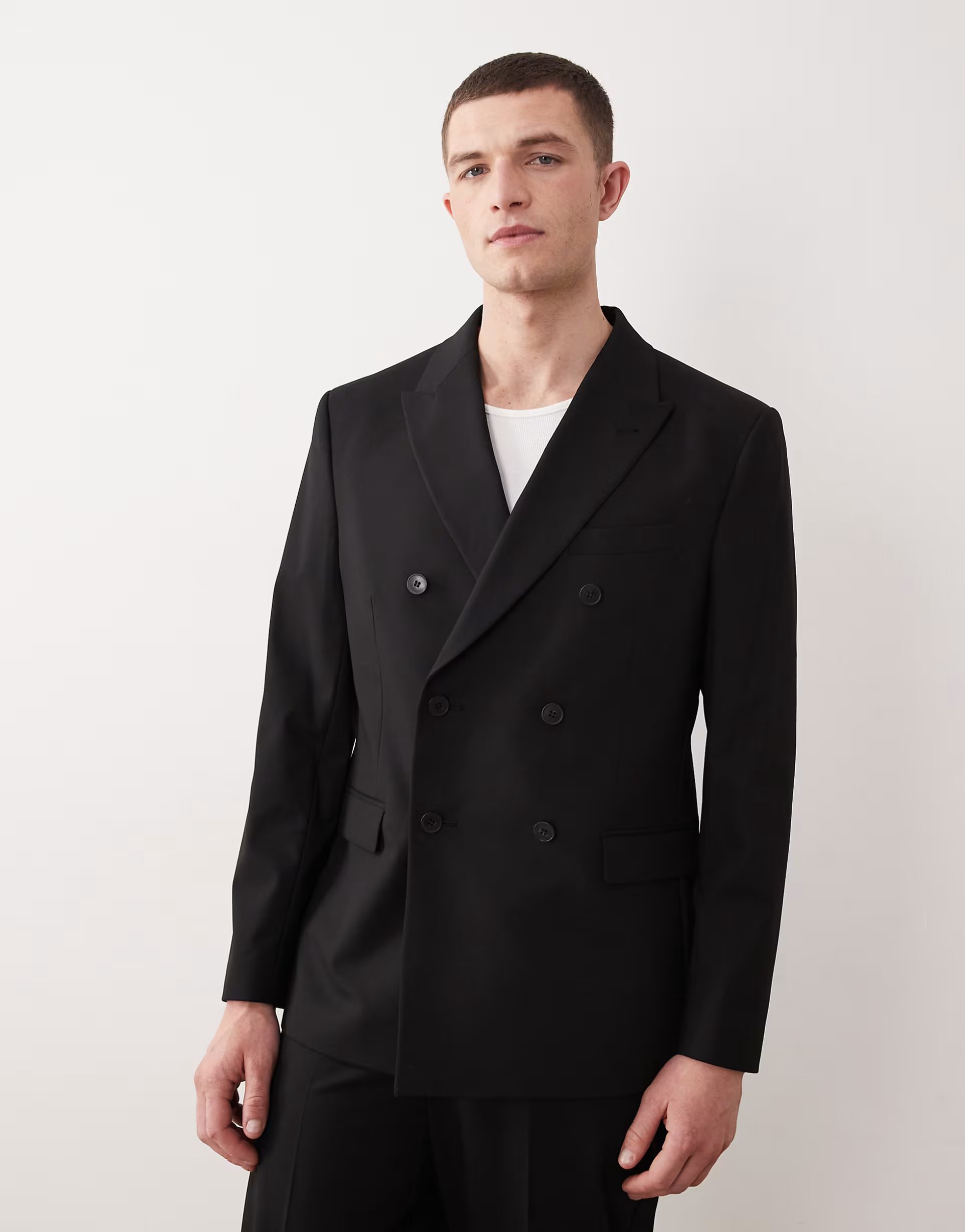 The ASOS Double Breasted Regular Suit Jacket in Black is ideal for business, formal.
