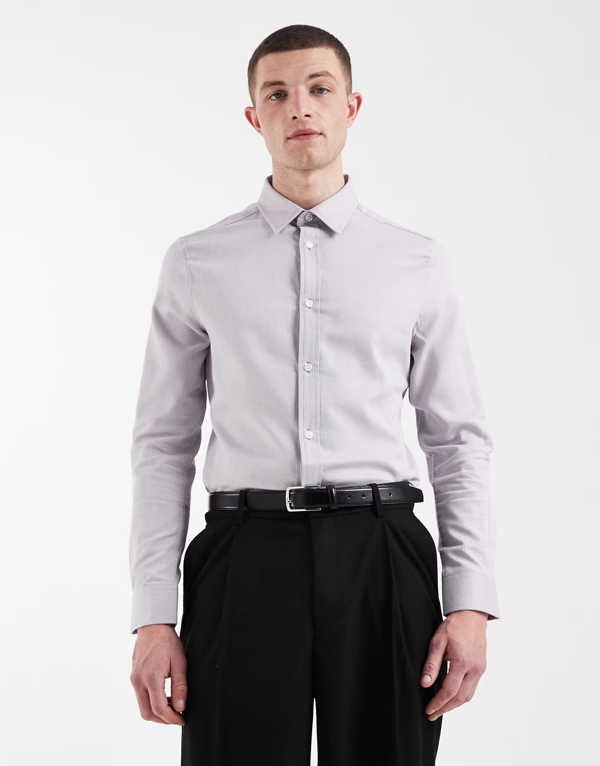 The ASOS DESIGN Slim Fit Textured Shirt in Light Grey is ideal for work, business.