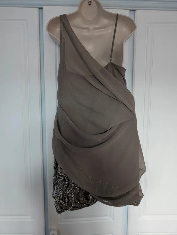 The ASOS Design Drape Chiffon Mini Dress in Grey is available in sizes L.