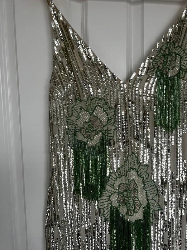 The ASOS Silver & Green Sequin Maxi Dress is available in sizes M.