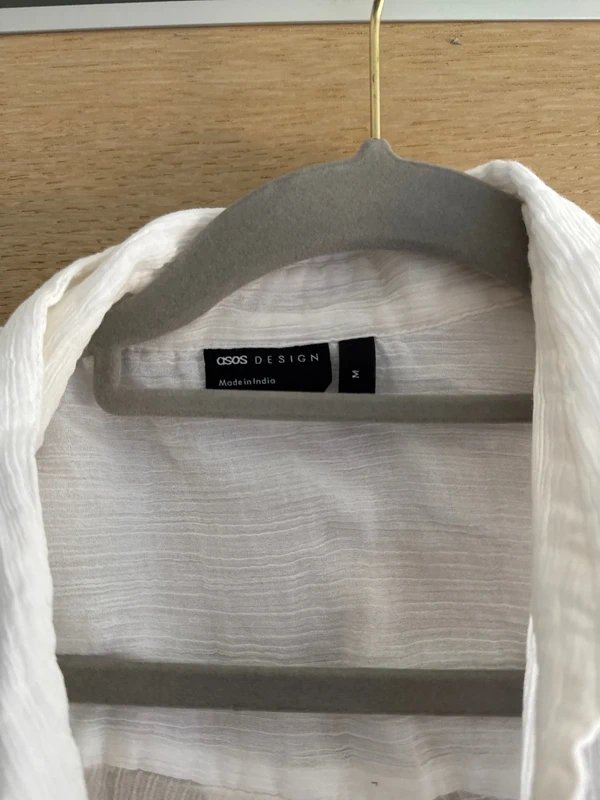 The ASOS Design White Embroidered Cover Up Shirt is available in sizes M.