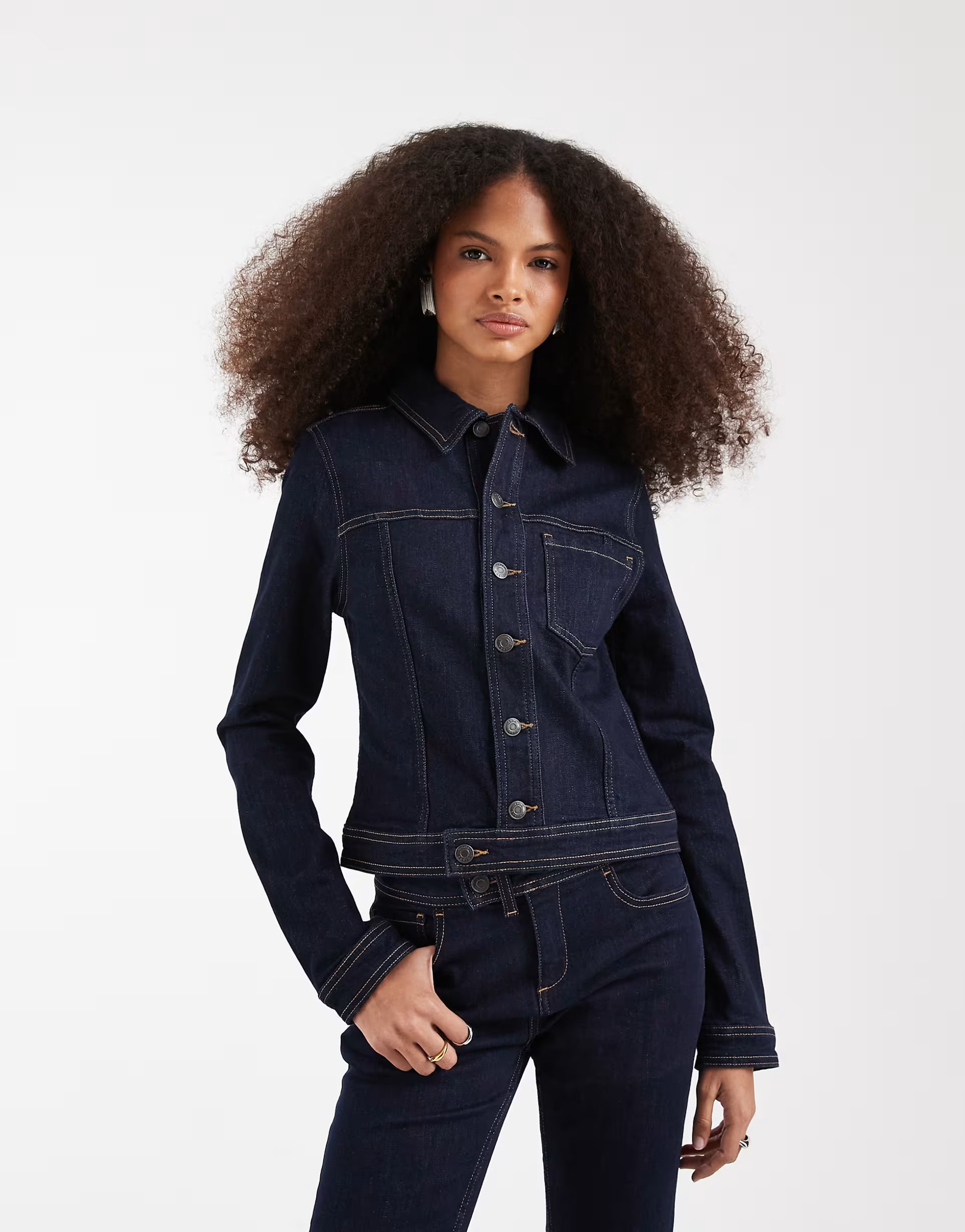 The ASOS Fitted Denim Jacket Co-ord in Inky Wash is ideal for casual, smart-casual.
