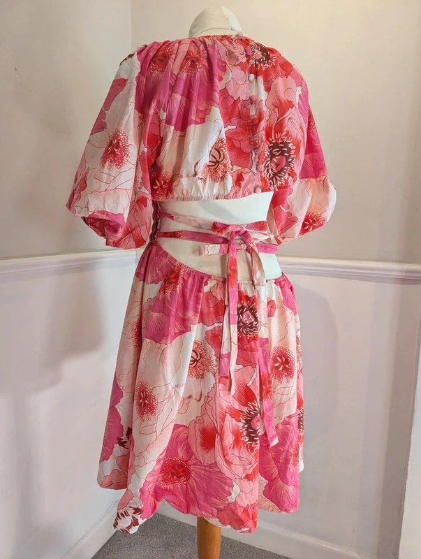 The ASOS Floral Print Spring Dress in Pink is available in sizes L.