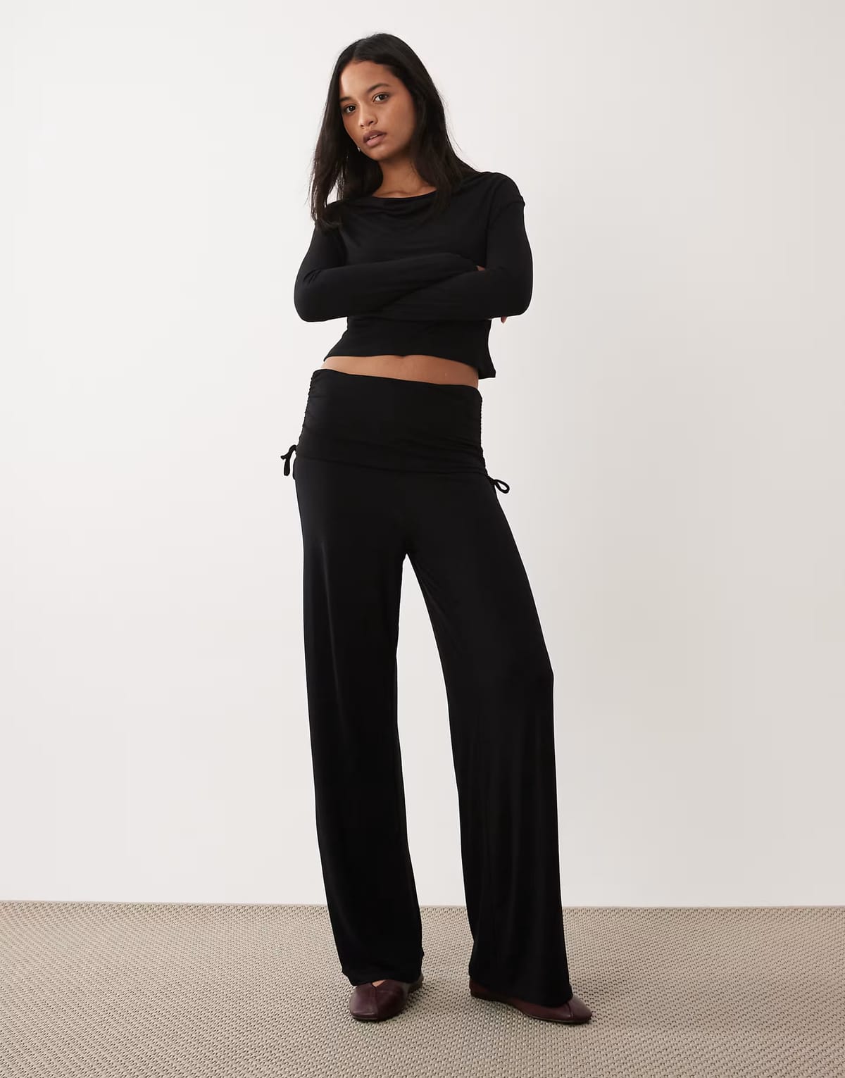 The ASOS DESIGN Ruched Co-ord Trousers in Black is made from jersey.