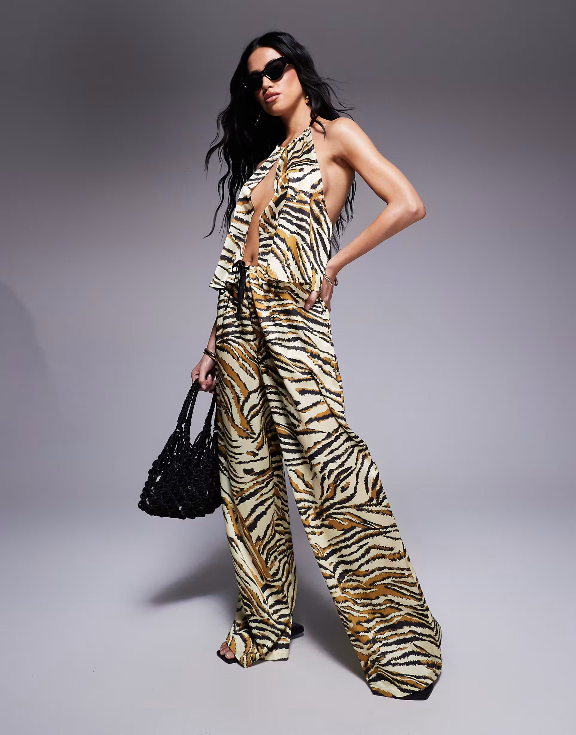 The ASOS Animal Print Satin Beach Trouser is made from satin.