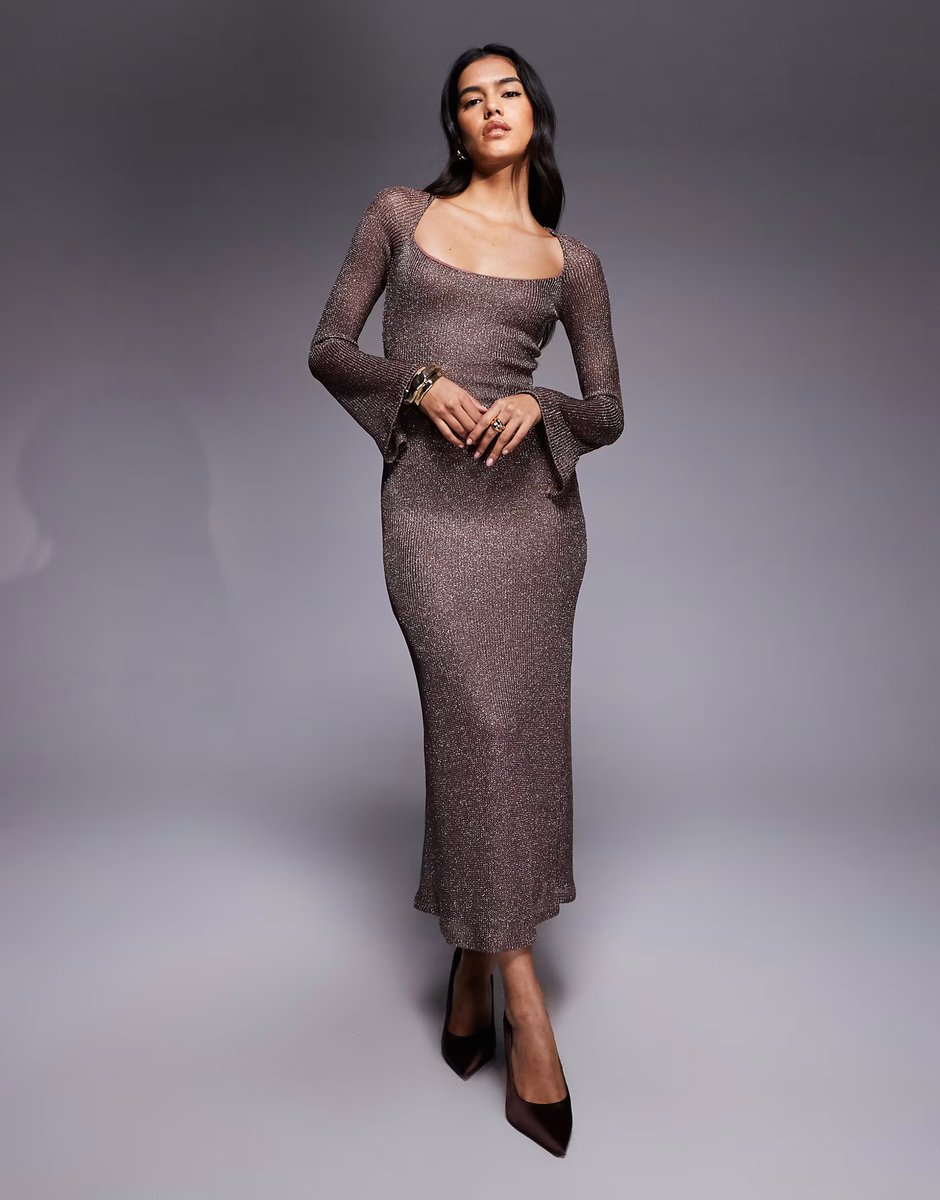 The ASOS DESIGN Rose Gold Glitter Knit Maxi Dress is ideal for party, evening, formal.