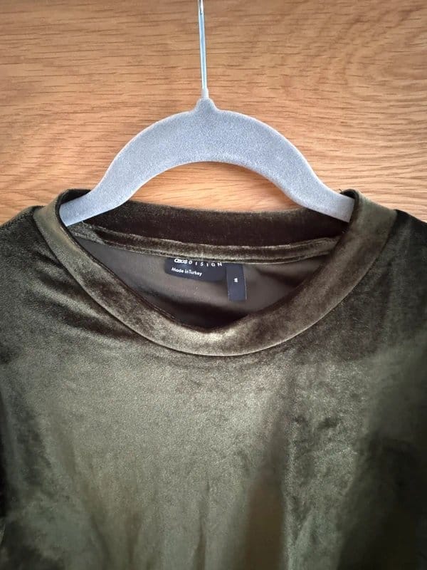 The ASOS Design Green Velvet T-Shirt is available in sizes M.