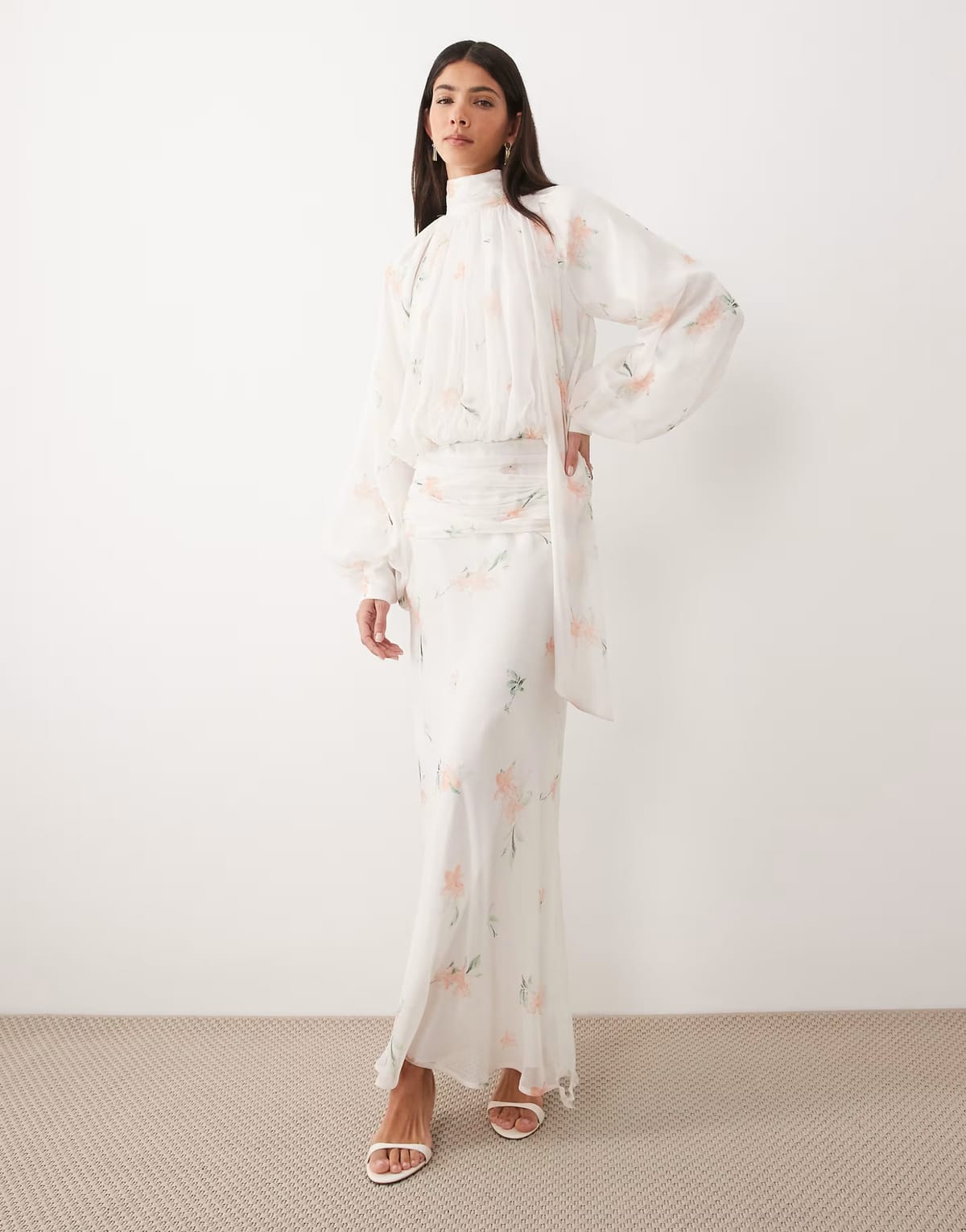 The ASOS Pink Floral Chiffon Maxi Dress with Neck Tie is ideal for evening, special occasion, party.