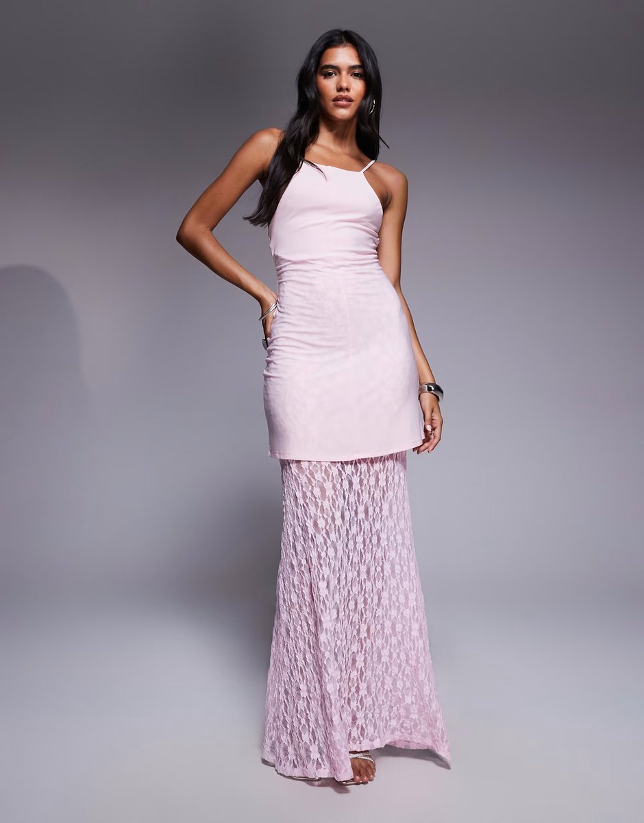 The ASOS DESIGN High Neck Peplum Maxi Dress in Light Pink is ideal for evening, party.