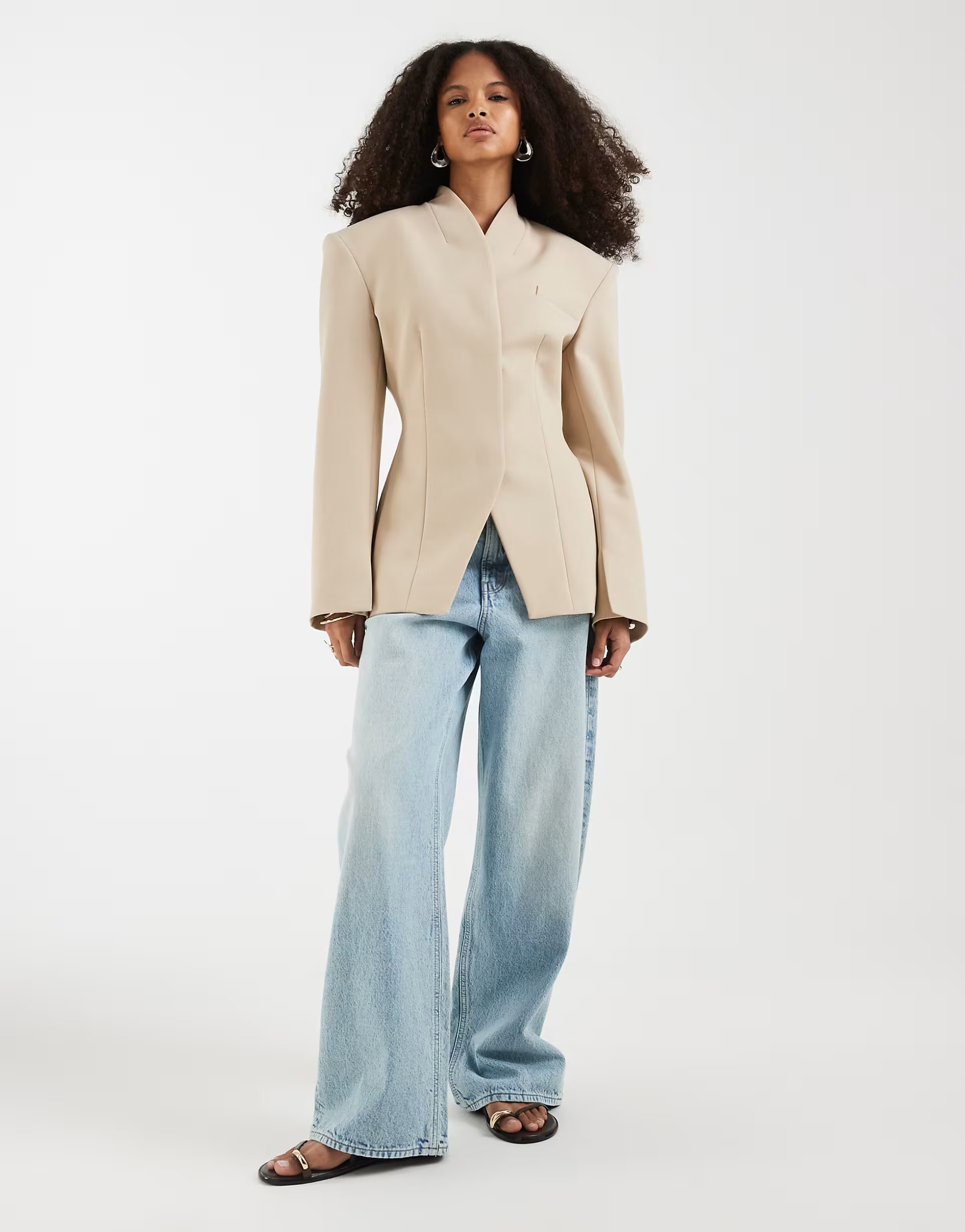 The ASOS DESIGN Wrap High Blazer in Beige is ideal for evening, party.