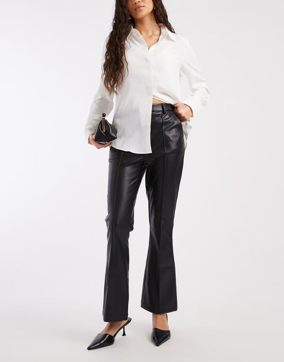 The ASOS DESIGN Black Faux Leather Kick Flare Trousers is ideal for business, casual, evening.