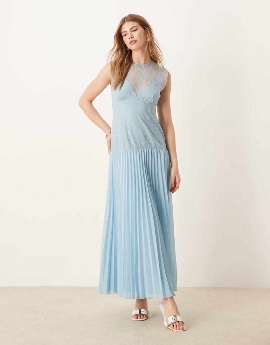 The ASOS DESIGN Icy Blue Lace Pleated Midi Dress is ideal for party, wedding-guest.